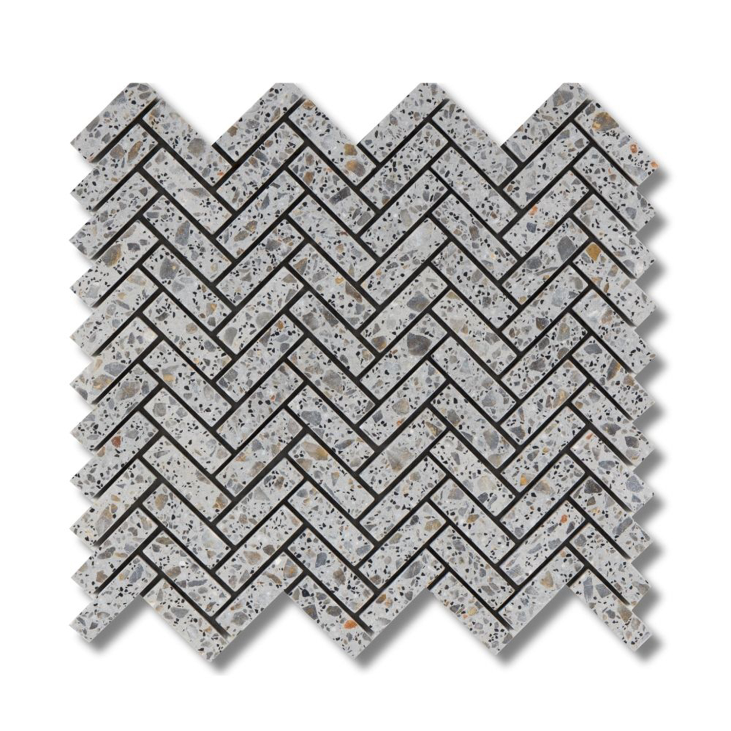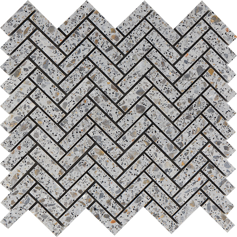 Grigio Tumbled Terrazzo Herringbone 1,5×5 cm Mosaic